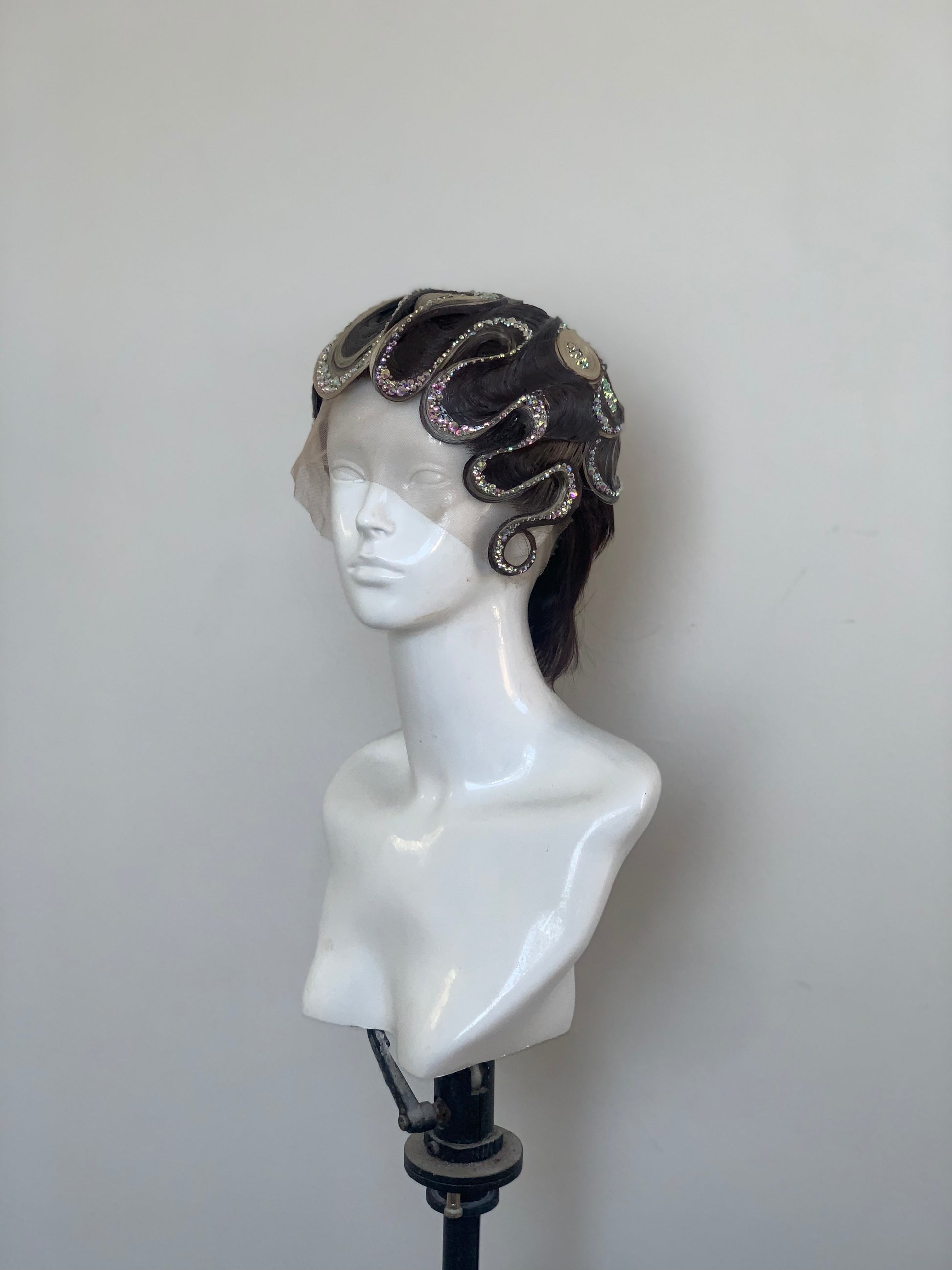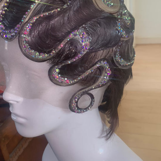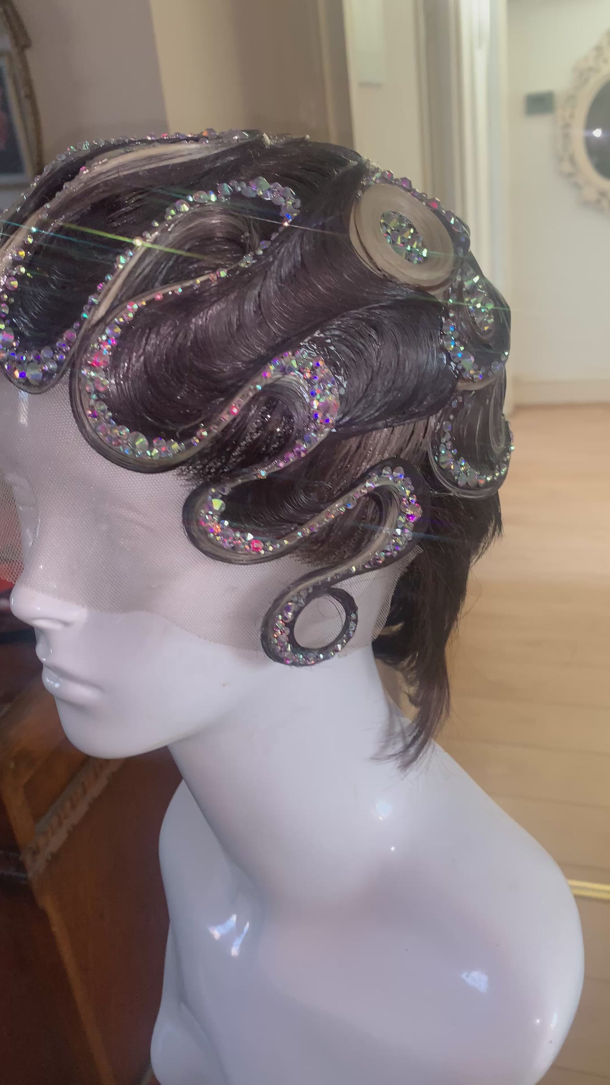 Tap solid- brown and blonde base wig with AB crystal embellishment.