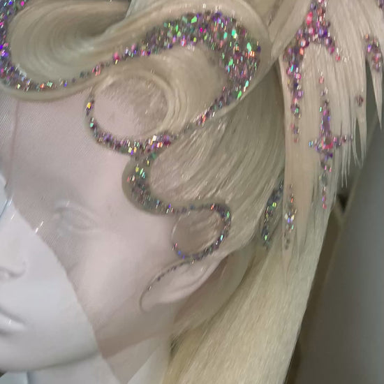 Platinum, AB crystal seraphim, 30 inch ponytail.